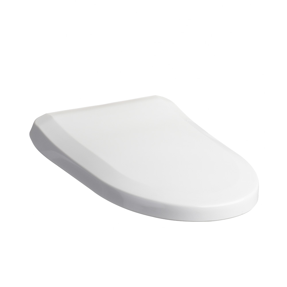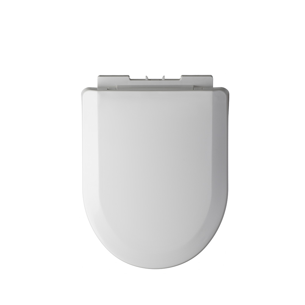 Asiento para inodoro con cierre suave y fijación regulable; material resistente y fácil limpieza.
