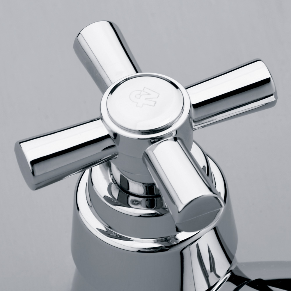 Llave para lavabo CRUX de diseño moderno y elegante, fabricada con materiales de alta calidad que garantizan durabilidad y resistencia. Su acabado cromado ofrece un toque sofisticado, ideal para baños contemporáneos.