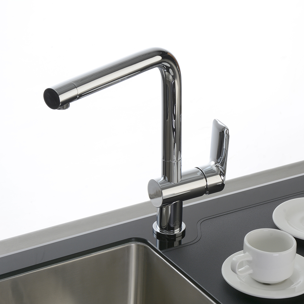 Juego monocomando para cocina COTY de FV: diseño moderno y funcional que se integra perfectamente en cualquier cocina. Fabricado con materiales de alta calidad, ofrece un control preciso del flujo de agua. Ideal para quienes buscan estilo y eficiencia en su espacio culinario.