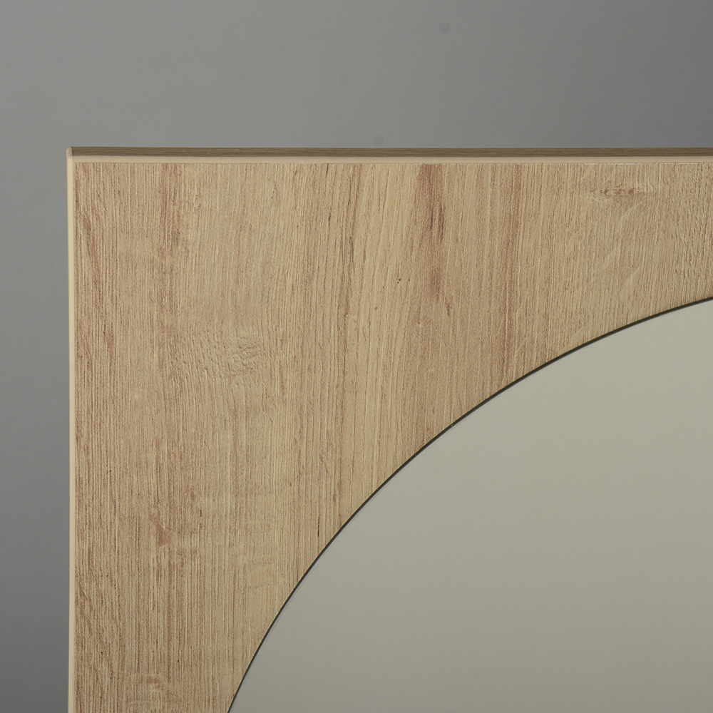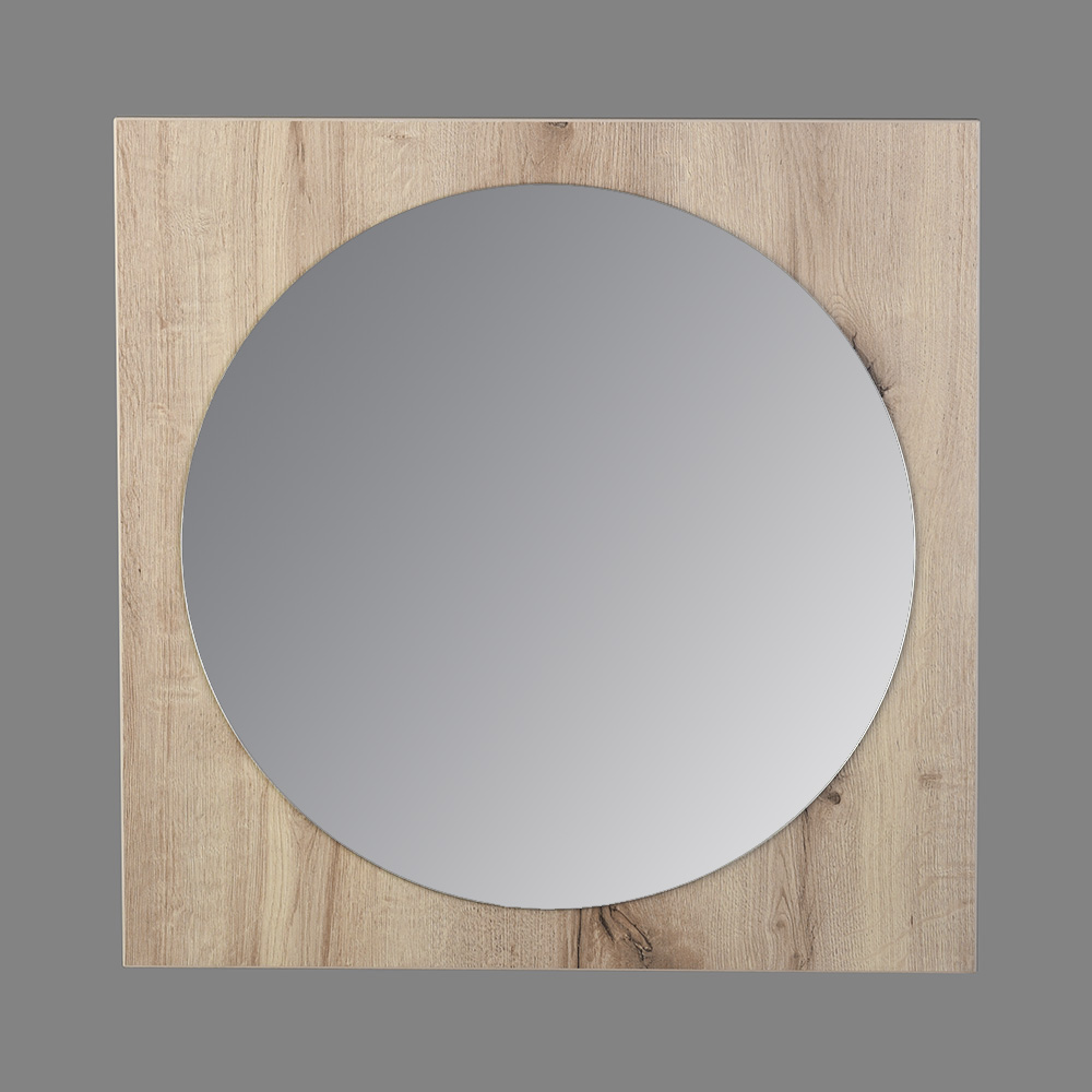 - Espejo redondo con marco decorativo cuadrado.