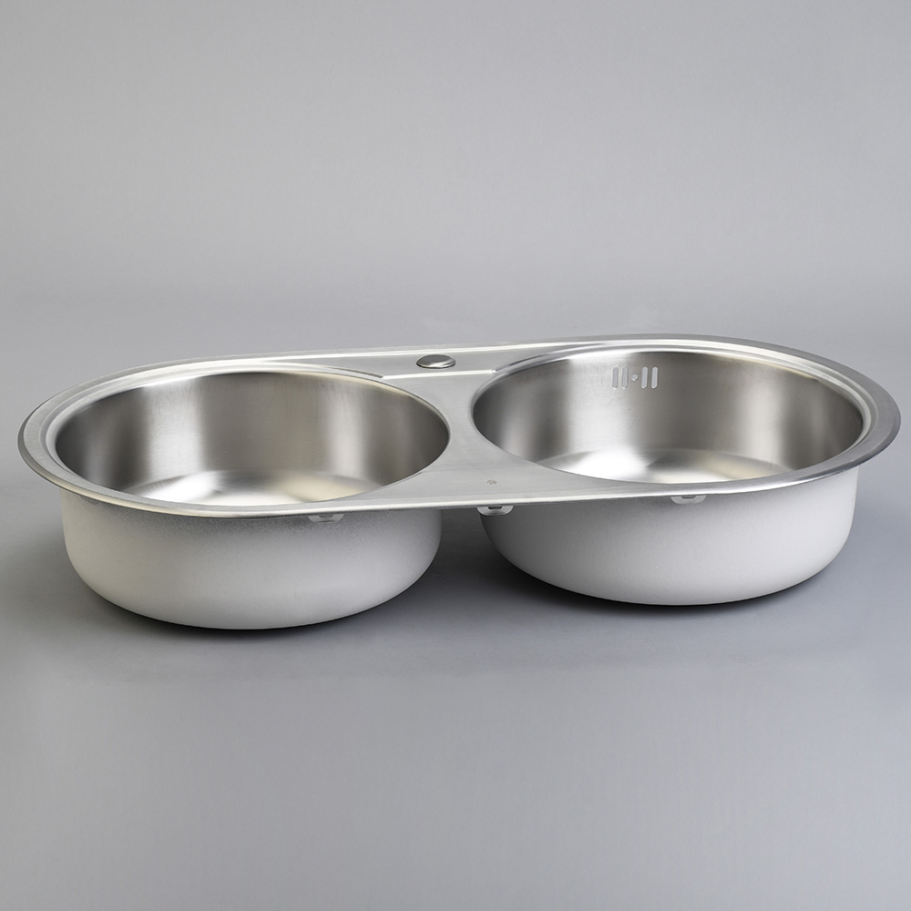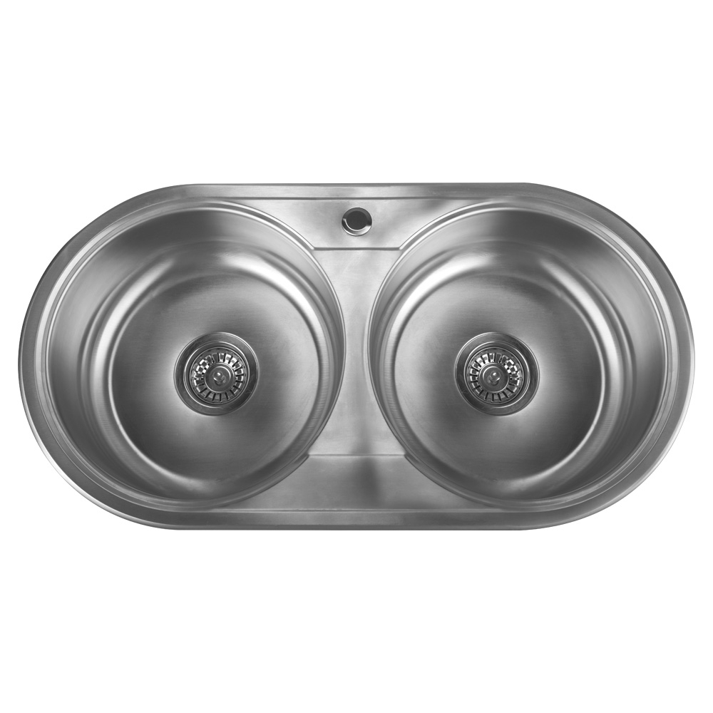 Fregadero – Fregadero Dos Pozos Redondos sin Escurridor 84 cm Inoxidable