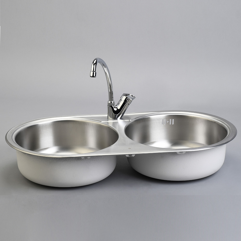 Fregadero Dos Pozos Redondos sin Escurridor 84 cm BL-958