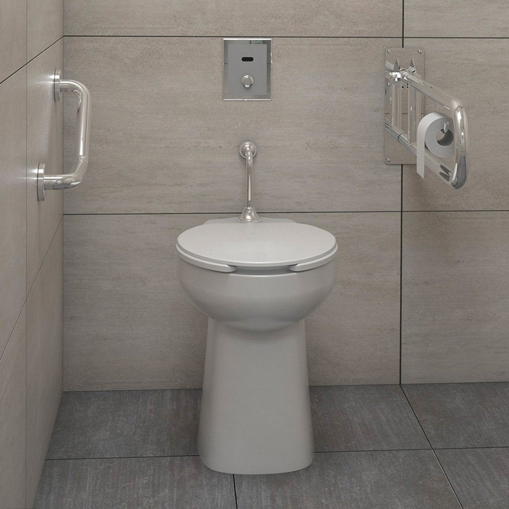 Barral inclinado de apoyo, diseñado para ofrecer seguridad y estabilidad en el baño. Fabricado con materiales duraderos, garantiza resistencia y confianza en su uso diario. Ideal para mejorar la accesibilidad.