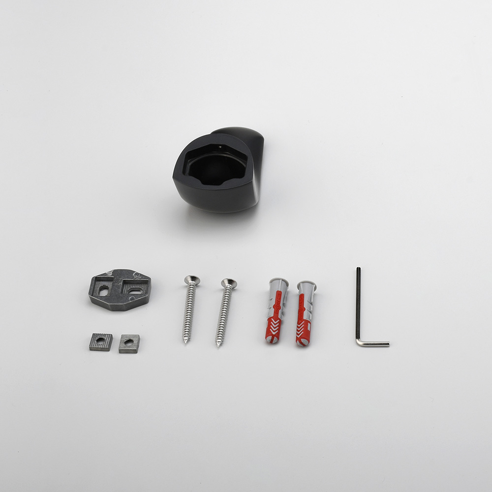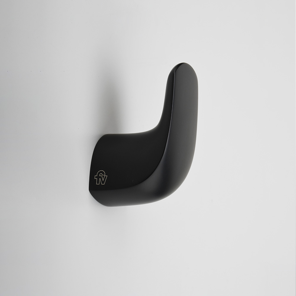 Gancho para ropa con acabado Negro, fijación estable y material resistente; solución práctica para el baño.