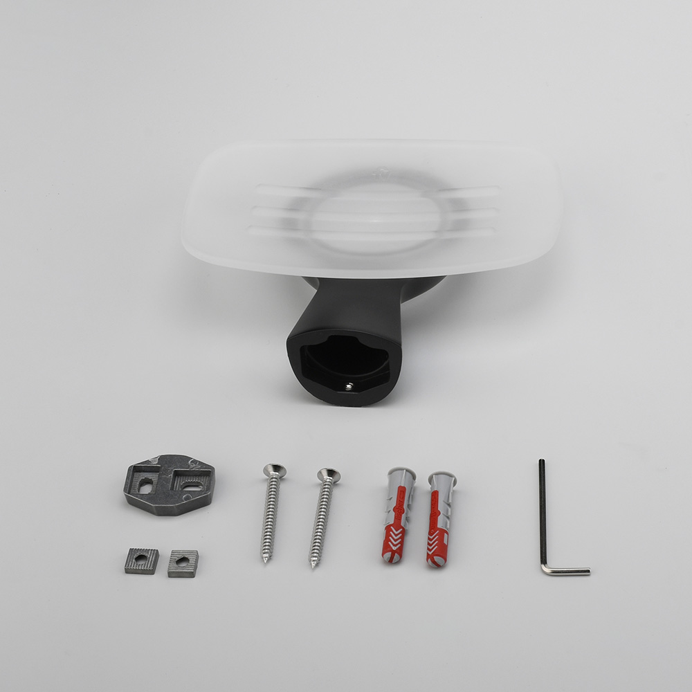 • Incluye jabonera de vidrio para jabón sólido.