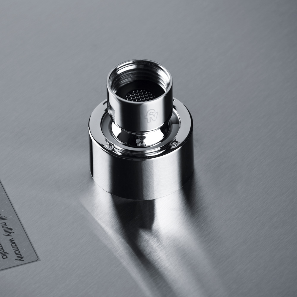 Cabeza de ducha redonda de 25 cm fabricada en ABS de alta resistencia. Su diseño funcional ofrece una experiencia de baño uniforme y envolvente. Ideal para baños modernos que buscan eficiencia y estilo.