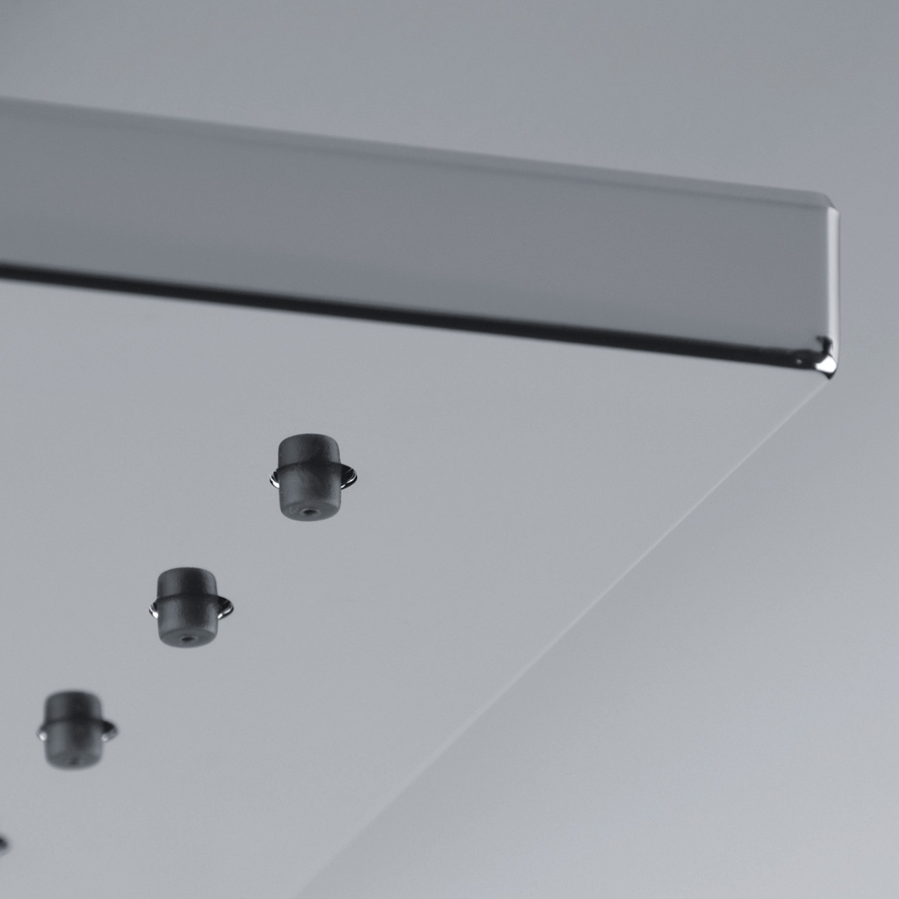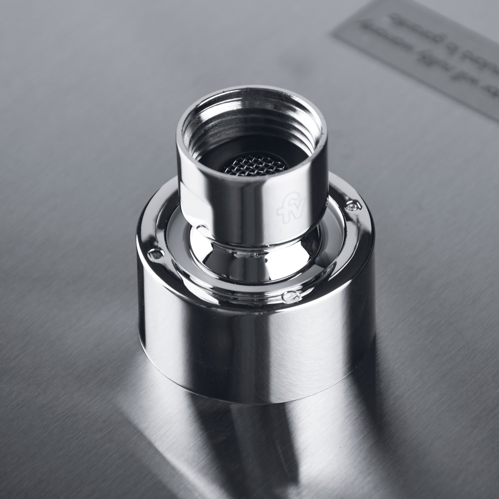 - Tapa superior de la ducha fabricada en acero inoxidable.