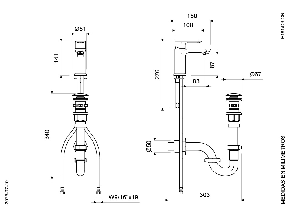 Juego Monocomando para Lavabo COTY E181/D9 NG