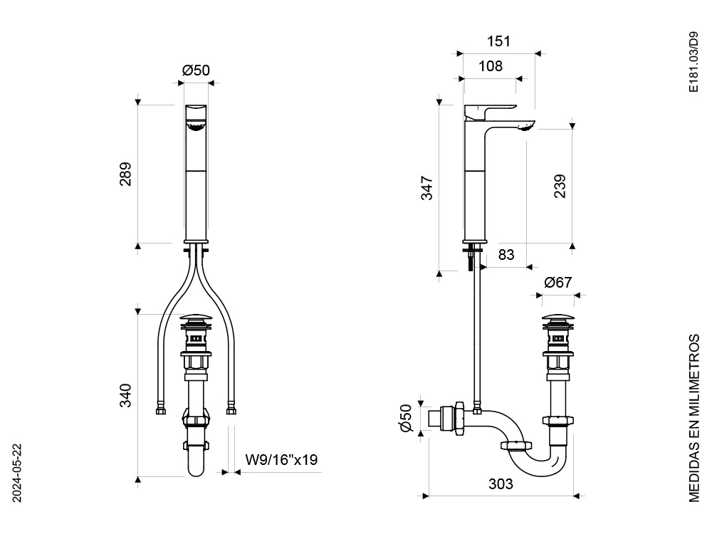 - Recomendado para uso con lavabos vessel.