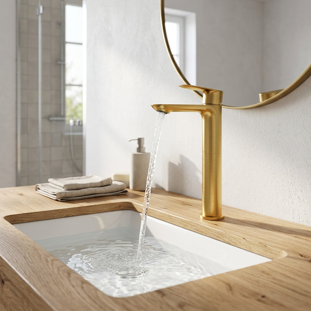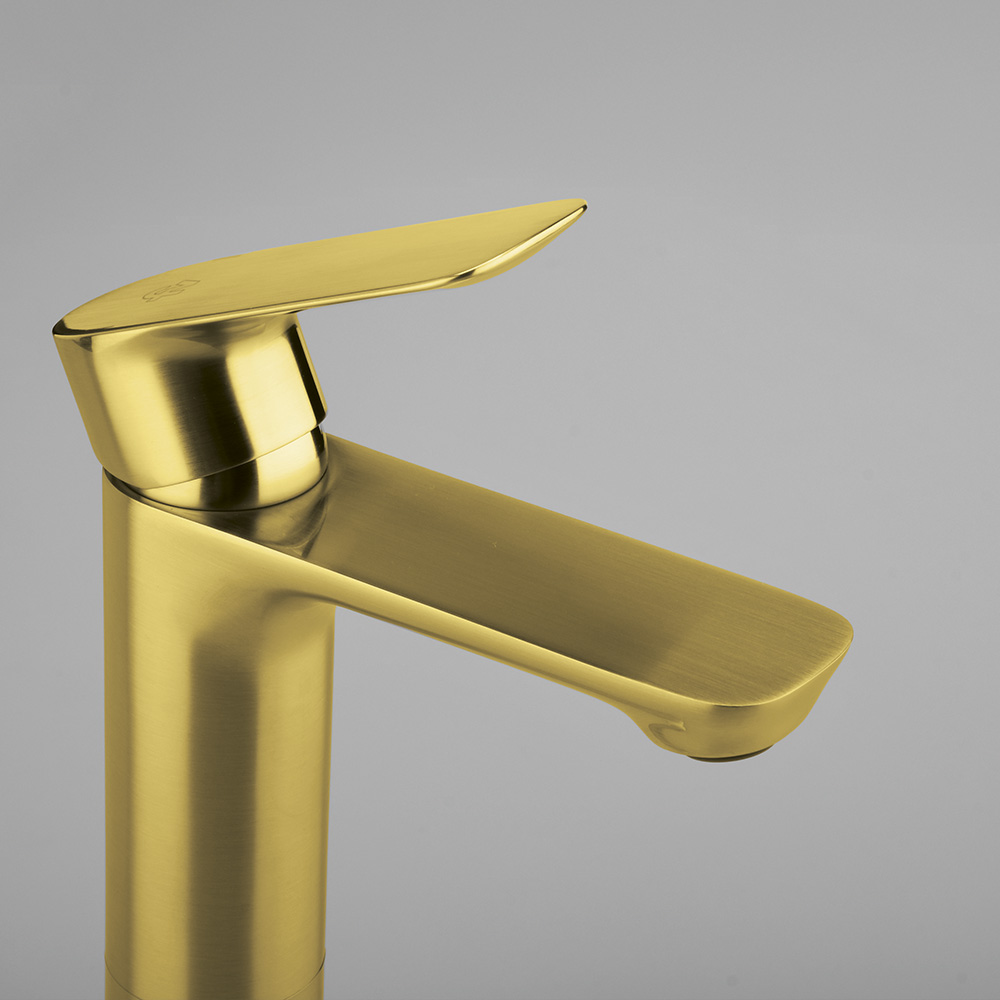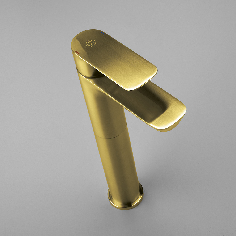 Grifería dorada para lavabo moderna – Juego Monocomando Alto para Lavabos Vessel COTY GOLD