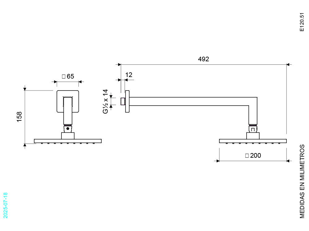 - Brazo de ducha fabricado en aleación de cobre y zinc (latón).