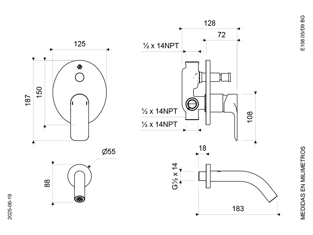 Juego Mezclador Monocomando para Ducha y Tina COTY E106.05/D9 NG