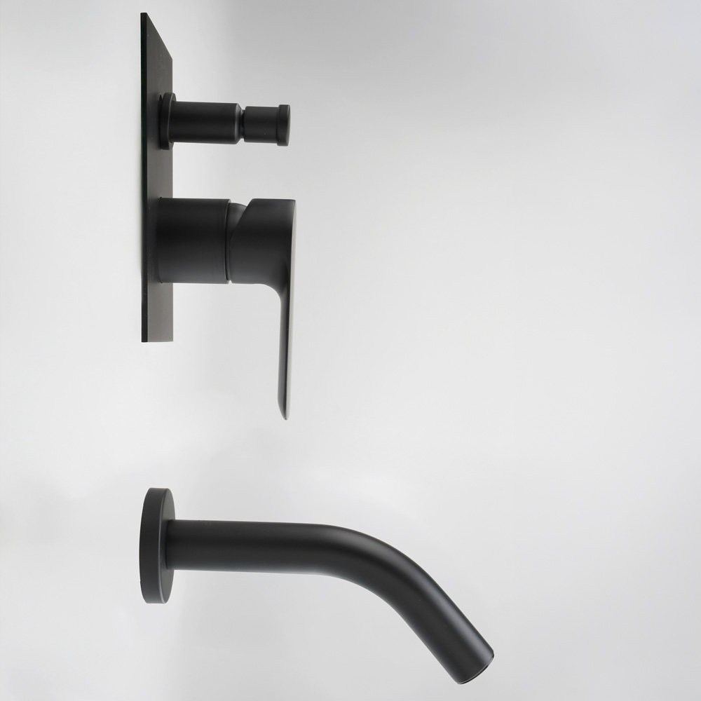Juego de ducha y pico para tina con operación suave y precisa y acabado resistente; diseño moderno, elegante y minimalista.