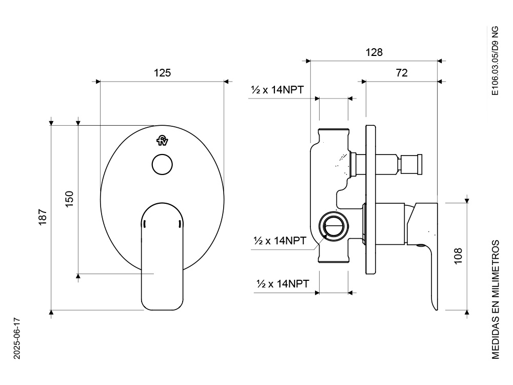 Juego Mezclador Monocomando para Ducha y Tina COTY E106.03.05/D9 NG
