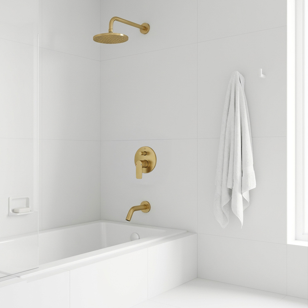 Juego de ducha y pico para tina con cartucho de alto desempeño y acabado resistente; diseño moderno, elegante y minimalista.
