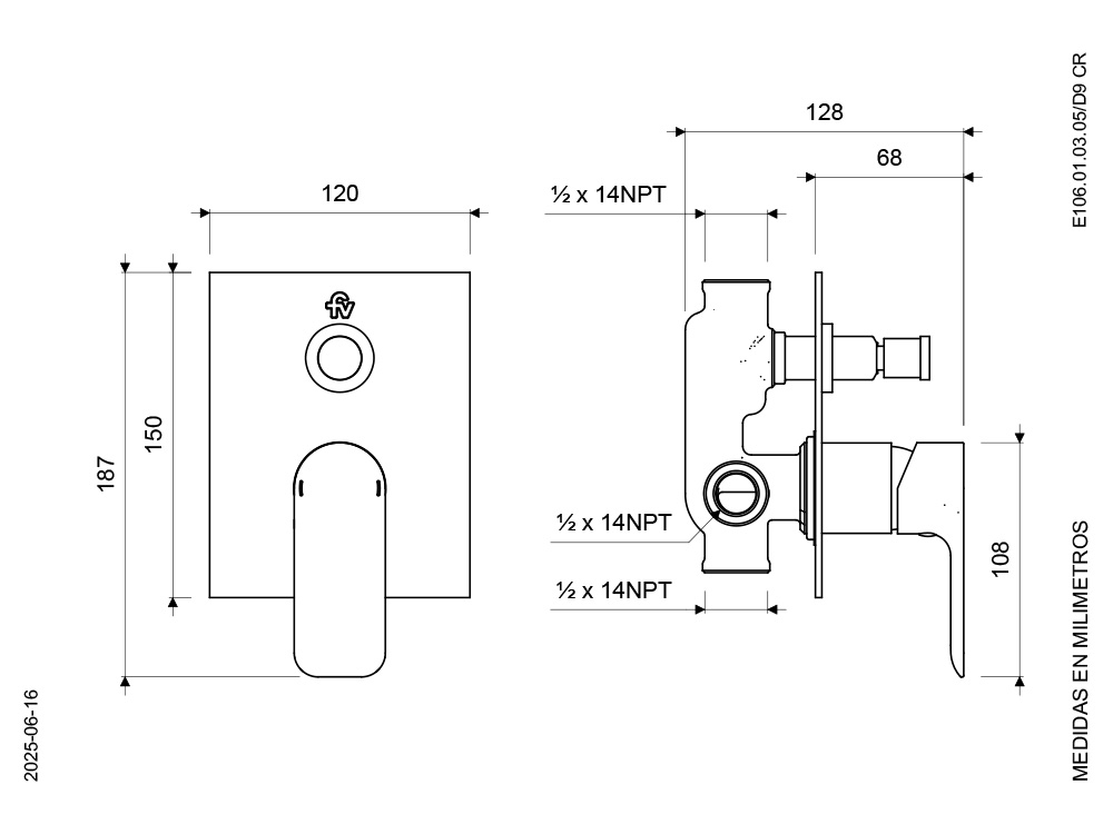 Juego Mezclador Monocomando para Ducha y Tina COTY E106.01.03.05/D9 NG