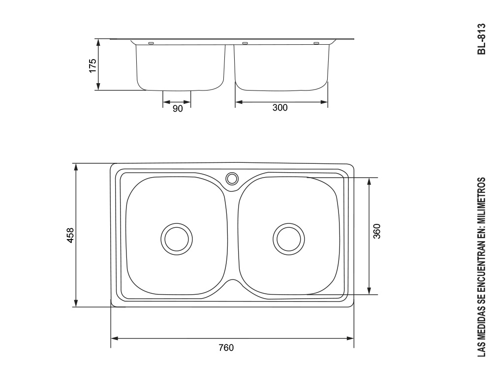 Fregadero dos Pozos sin Escurridor 76 cm BL-813