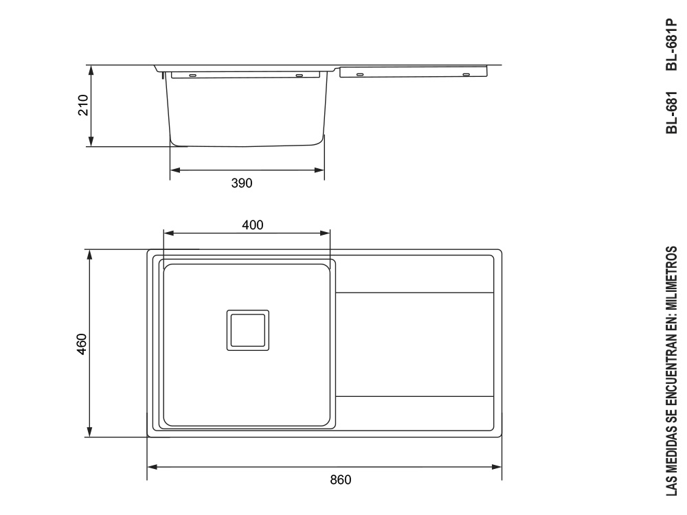 Fregadero un Pozo con Escurridor 86 cm Premium BL-681
