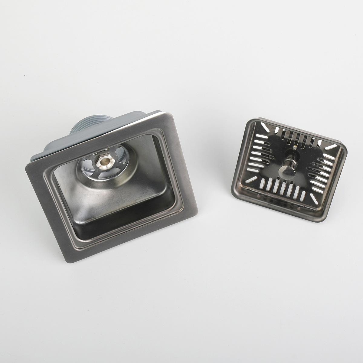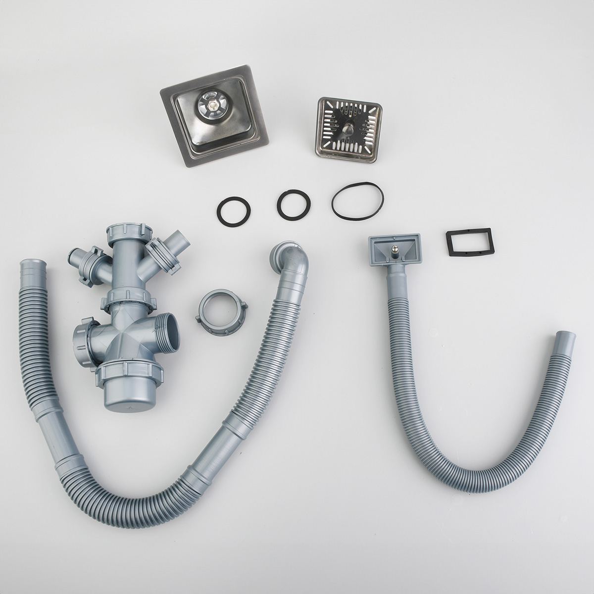- Conjunto desagüe de canastilla cuadrado y sifón (BL-498).