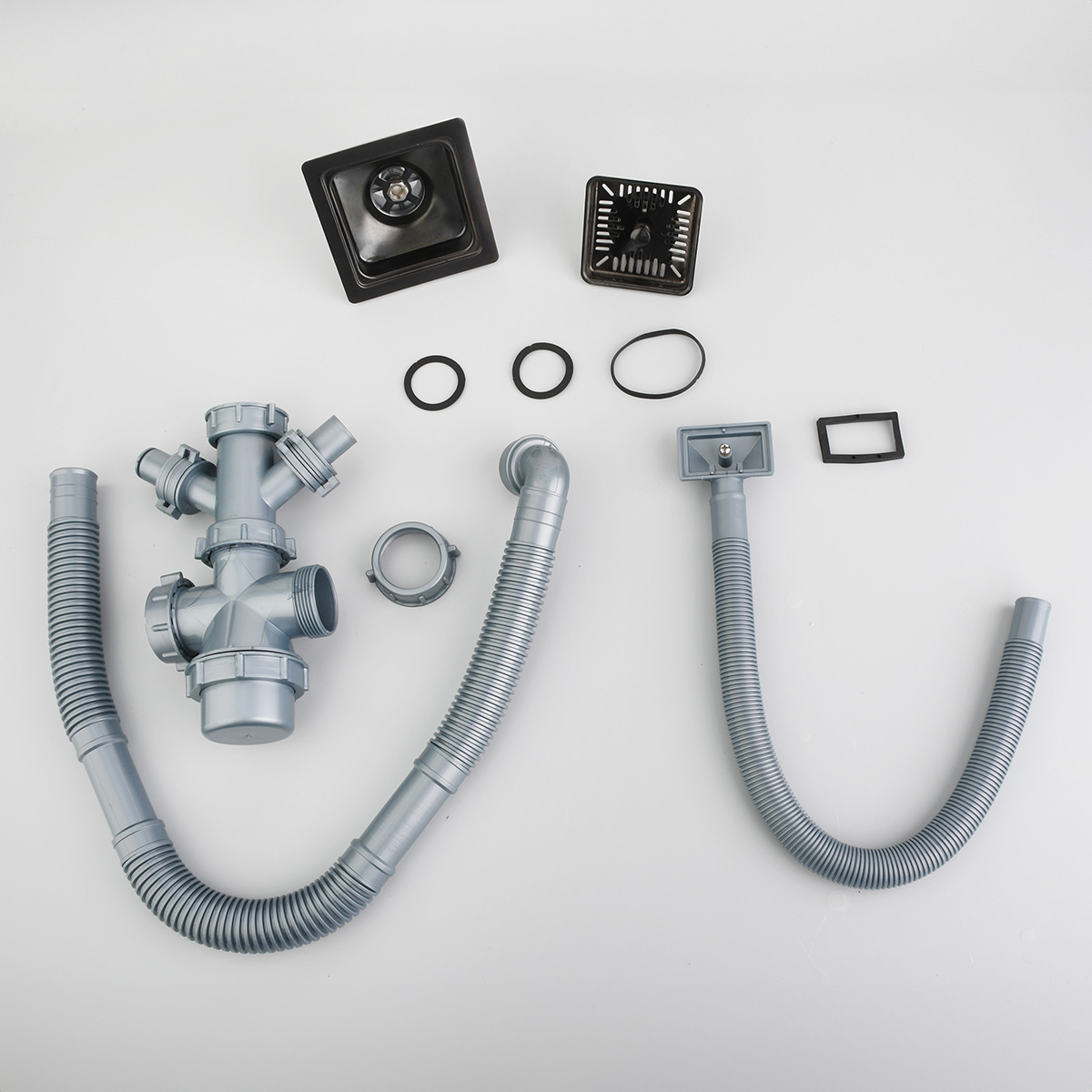 - Conjunto desagüe de canastilla cuadrado y sifón (BL-498P).
