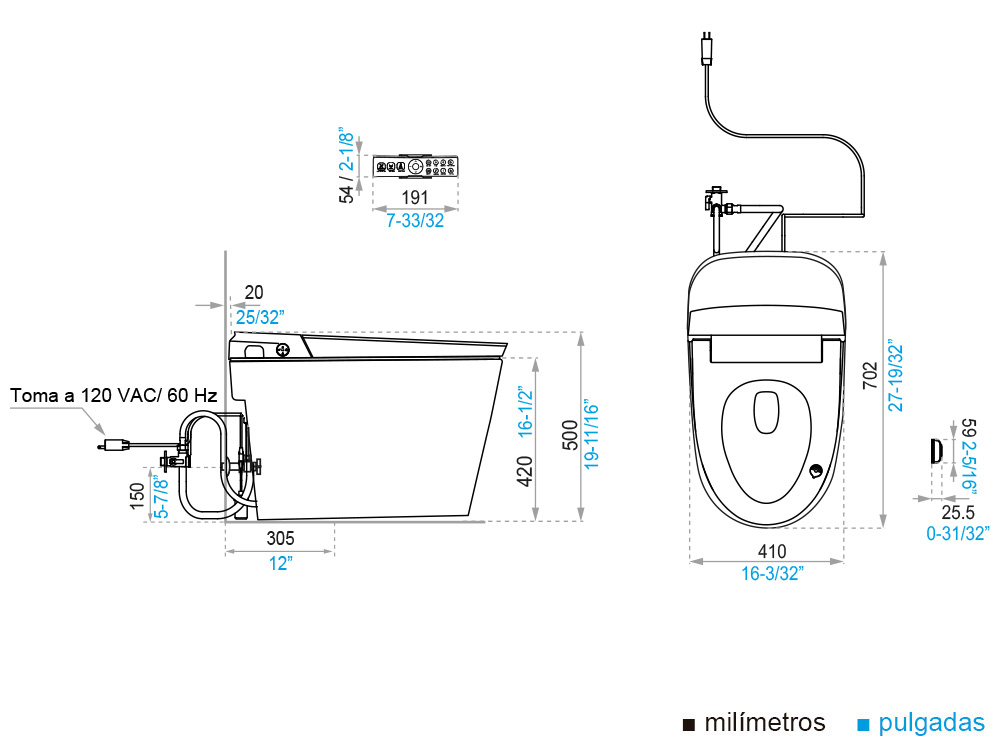 - Funciones de bidet incorporadas: lavado posterior, femenino y masaje limpiador.