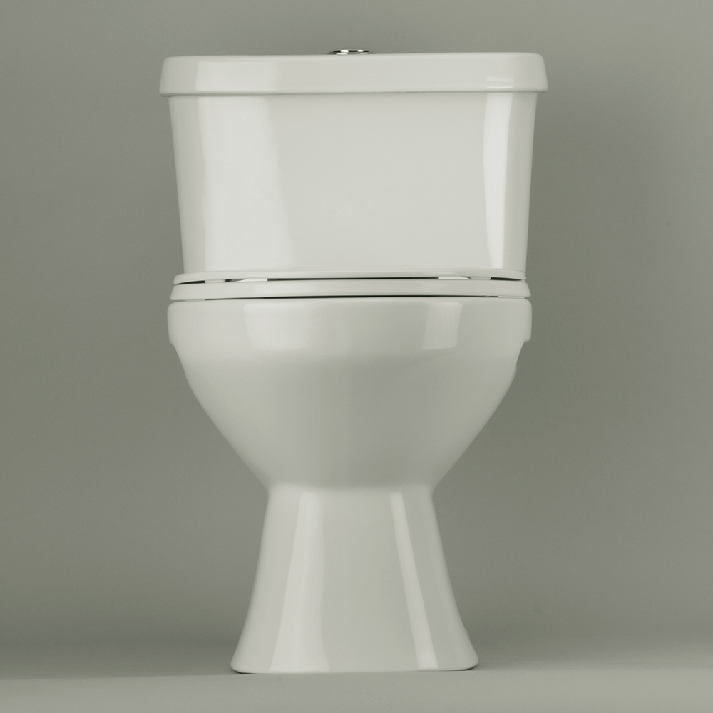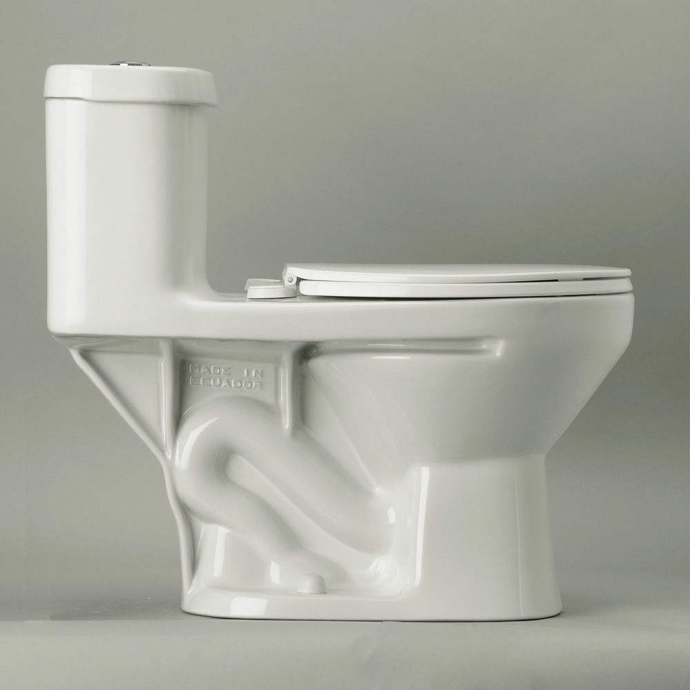 Inodoro con descarga eficiente, cerámica de alta resistencia y diseño confortable; equilibrio entre higiene y durabilidad.