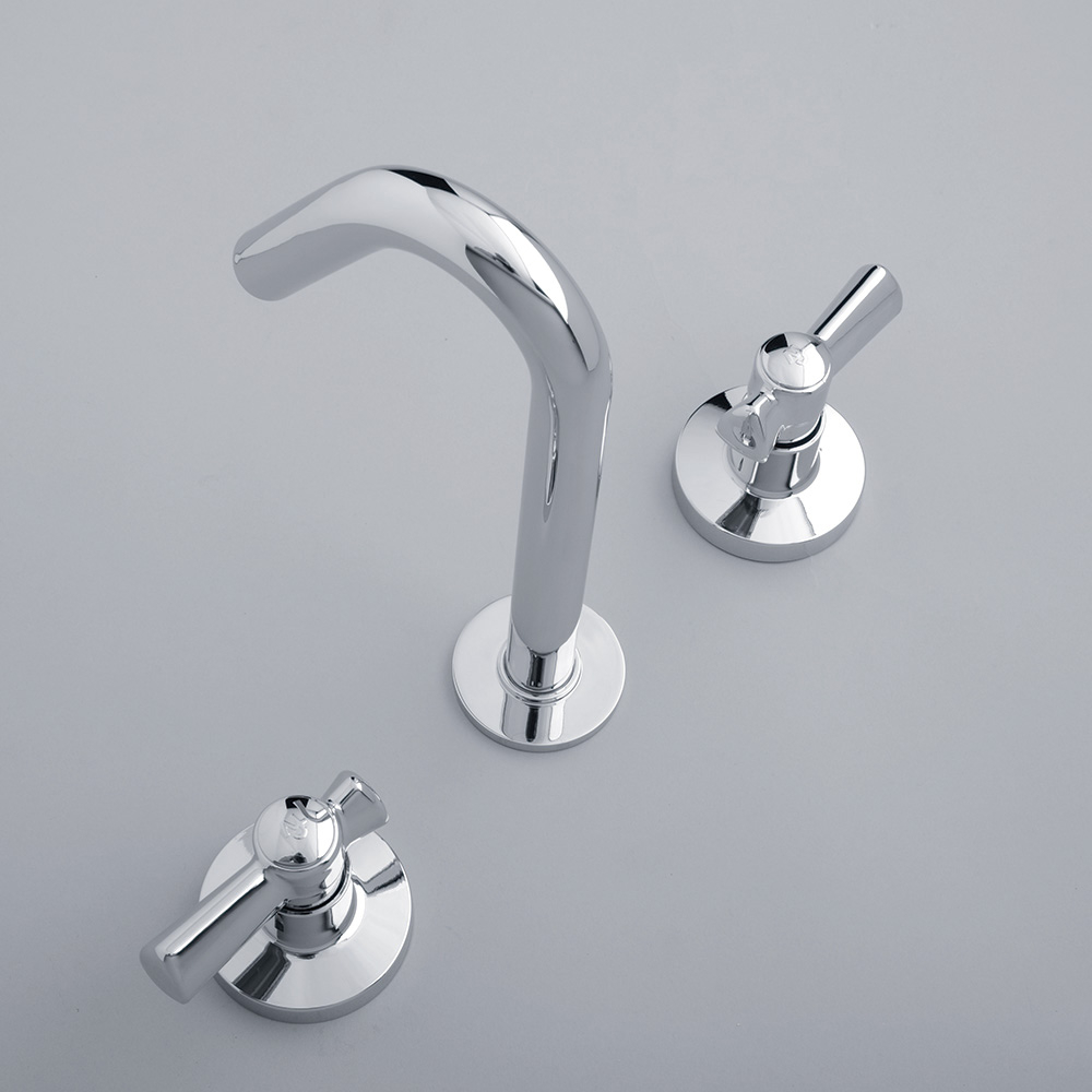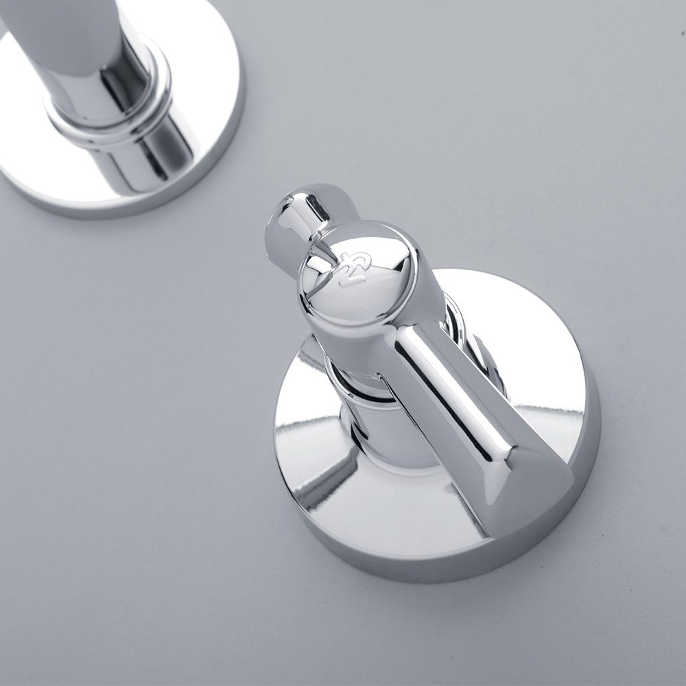 Juego de lavabo FIORI LEVER de 8" con diseño moderno y elegante. Destaca por su acabado cromado y palancas ergonómicas que facilitan el control del flujo de agua. Ideal para baños contemporáneos.
