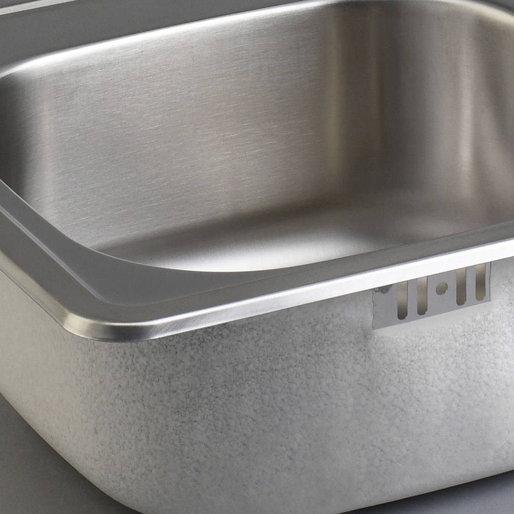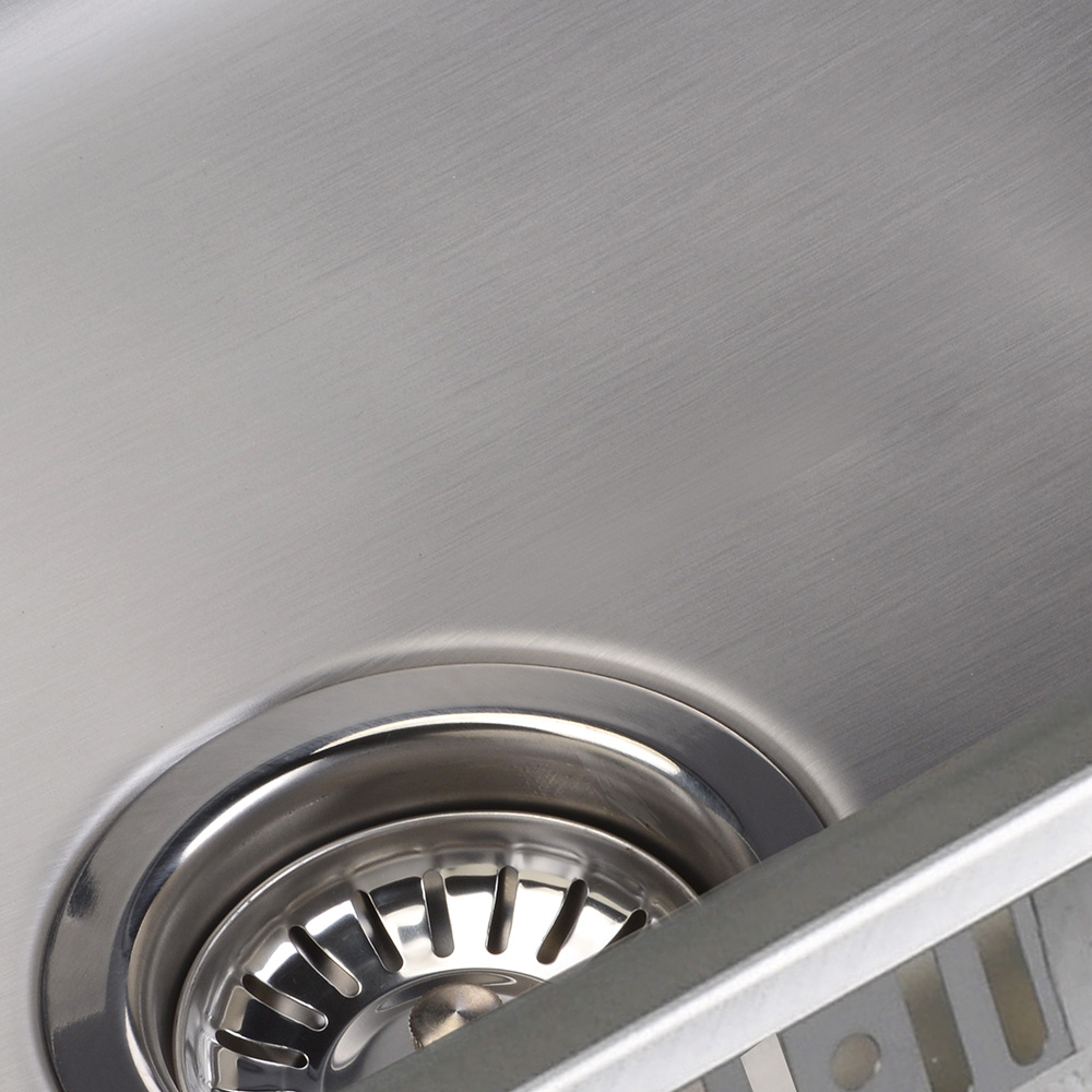 Fregadero con superficie resistente y fácil limpieza; diseño funcional para uso diario.