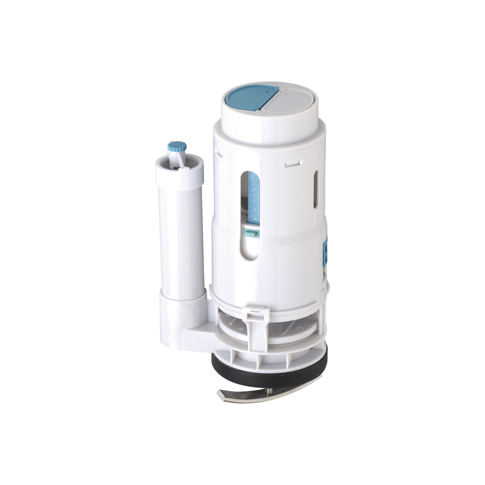 Válvula para inodoro de doble descarga que ahorra agua y asegura cierre confiable; construcción resistente.