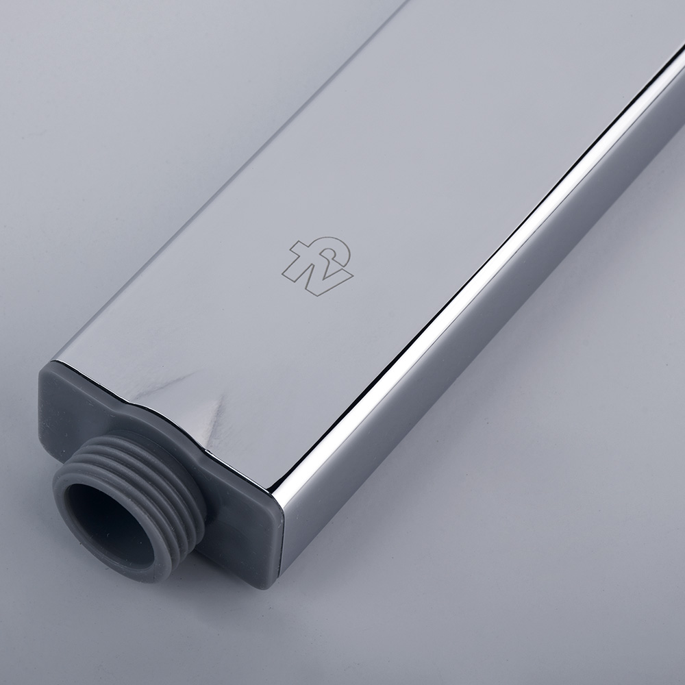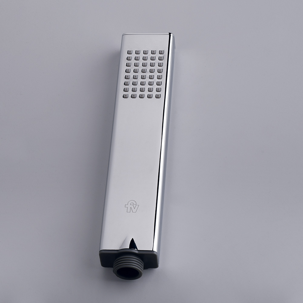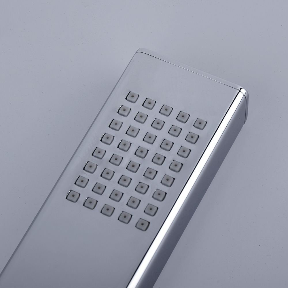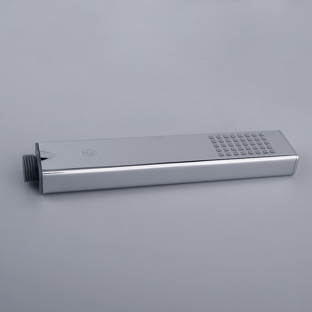 Ducha manual metálica rectangular de diseño moderno, fabricada con materiales de alta calidad para garantizar durabilidad y resistencia. Su acabado cromado ofrece un toque elegante, mientras que su sistema de control eficiente asegura un uso óptimo del agua.