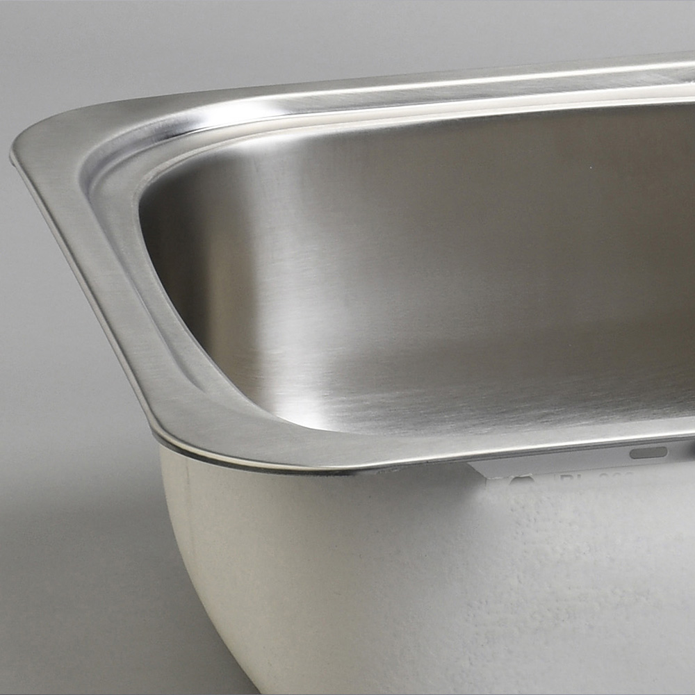 Fregadero con superficie resistente y fácil limpieza; diseño funcional para uso diario.