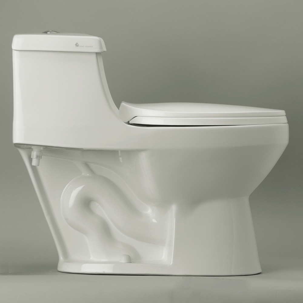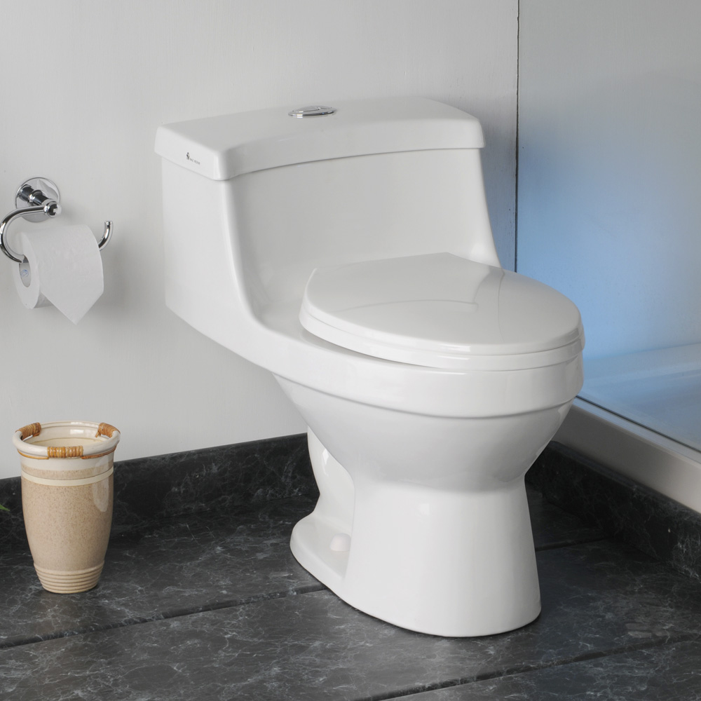 Inodoro con descarga eficiente, cerámica de alta resistencia y diseño confortable; equilibrio entre higiene y durabilidad.