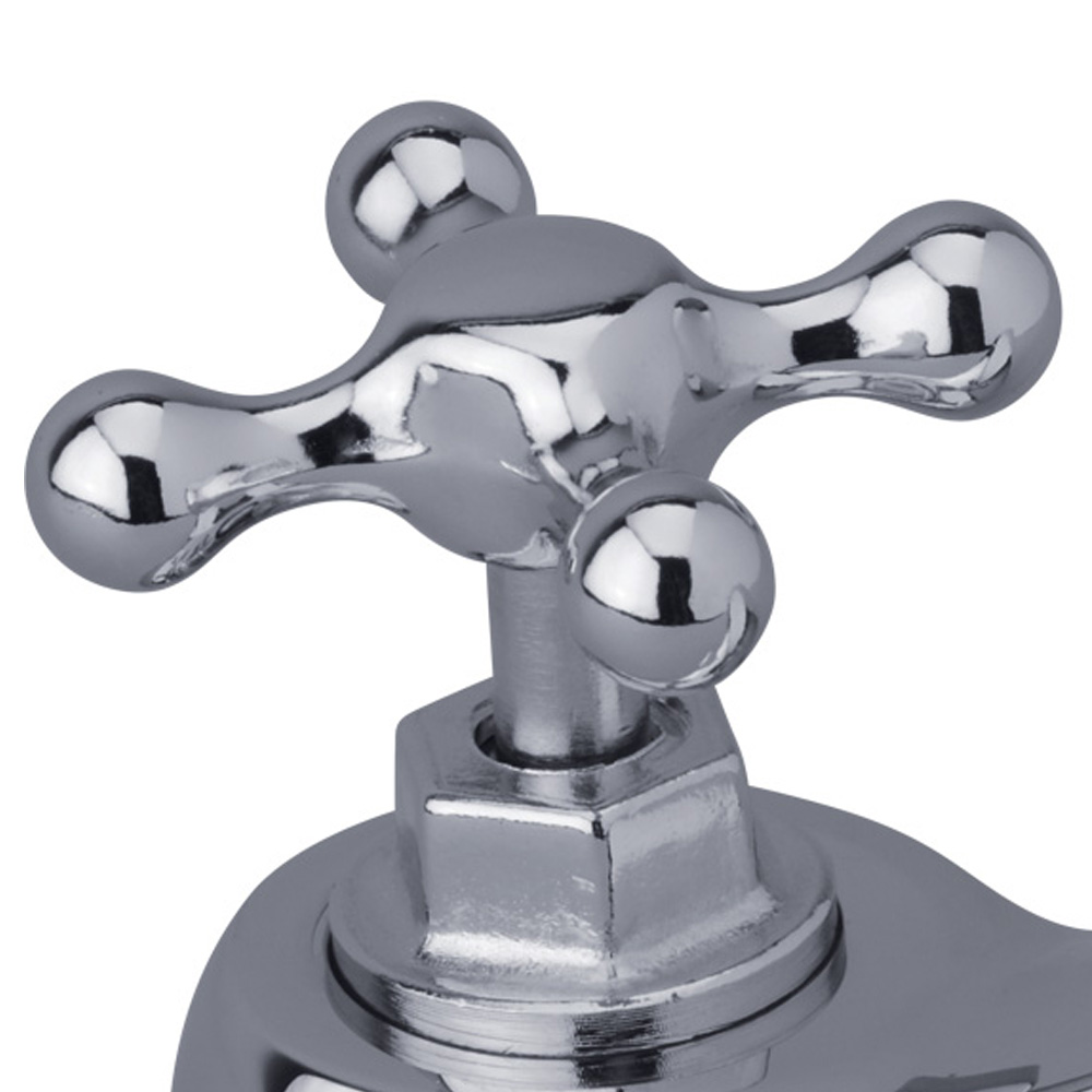 Llave para lavabo de diseño clásico y elegante, la Llave para Lavabo CRUZ FIJA de FV destaca por su acabado cromado y su construcción en materiales de alta calidad, garantizando durabilidad y resistencia. Ideal para baños que buscan un toque sofisticado.