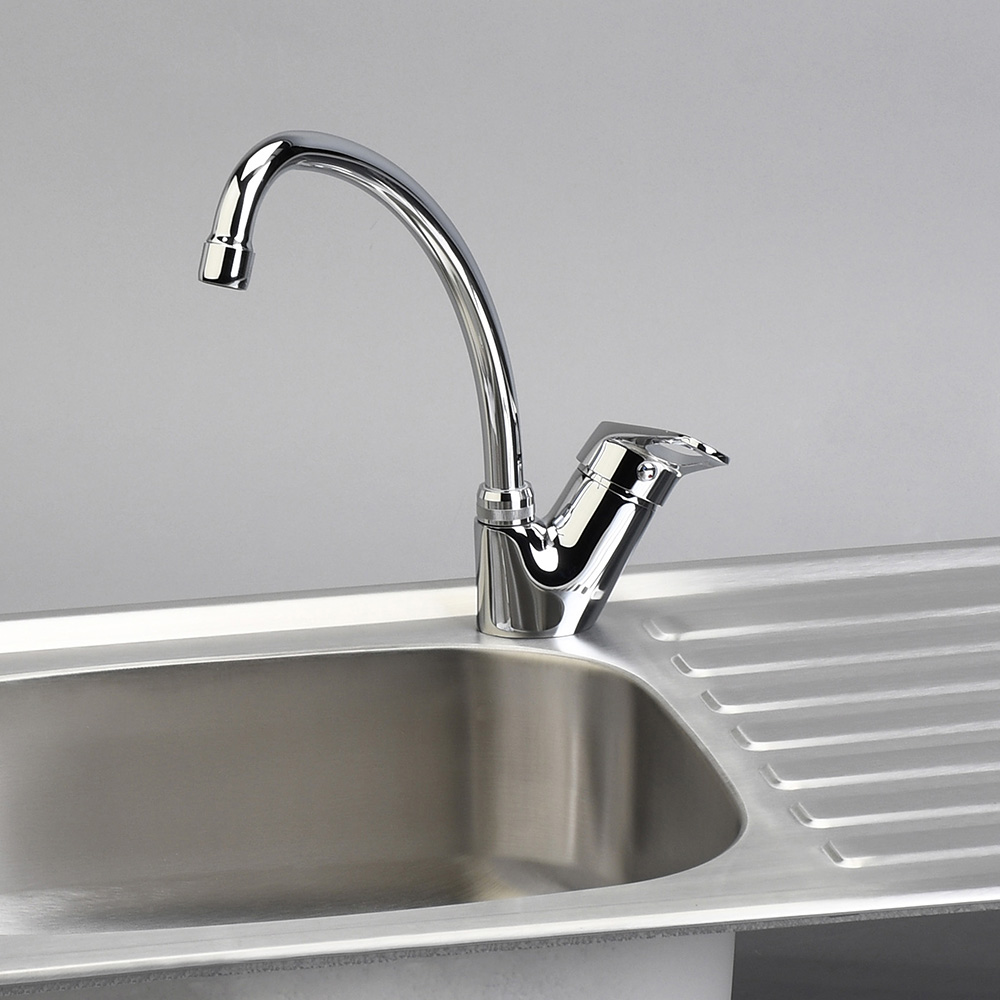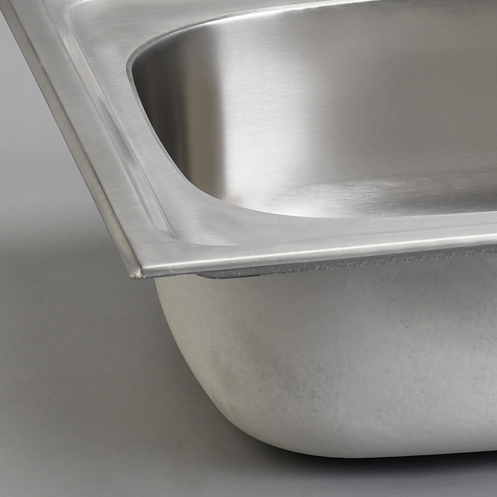 Fregadero con superficie resistente y fácil limpieza; diseño funcional para uso diario.