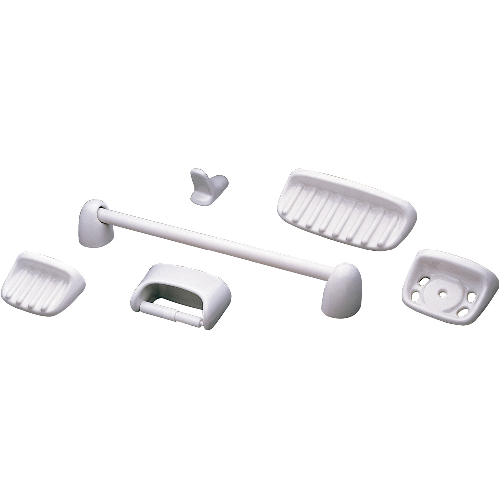Juego de accesorios para baño con acabados resistentes y sujeción estable; orden, higiene y mantenimiento sencillo.