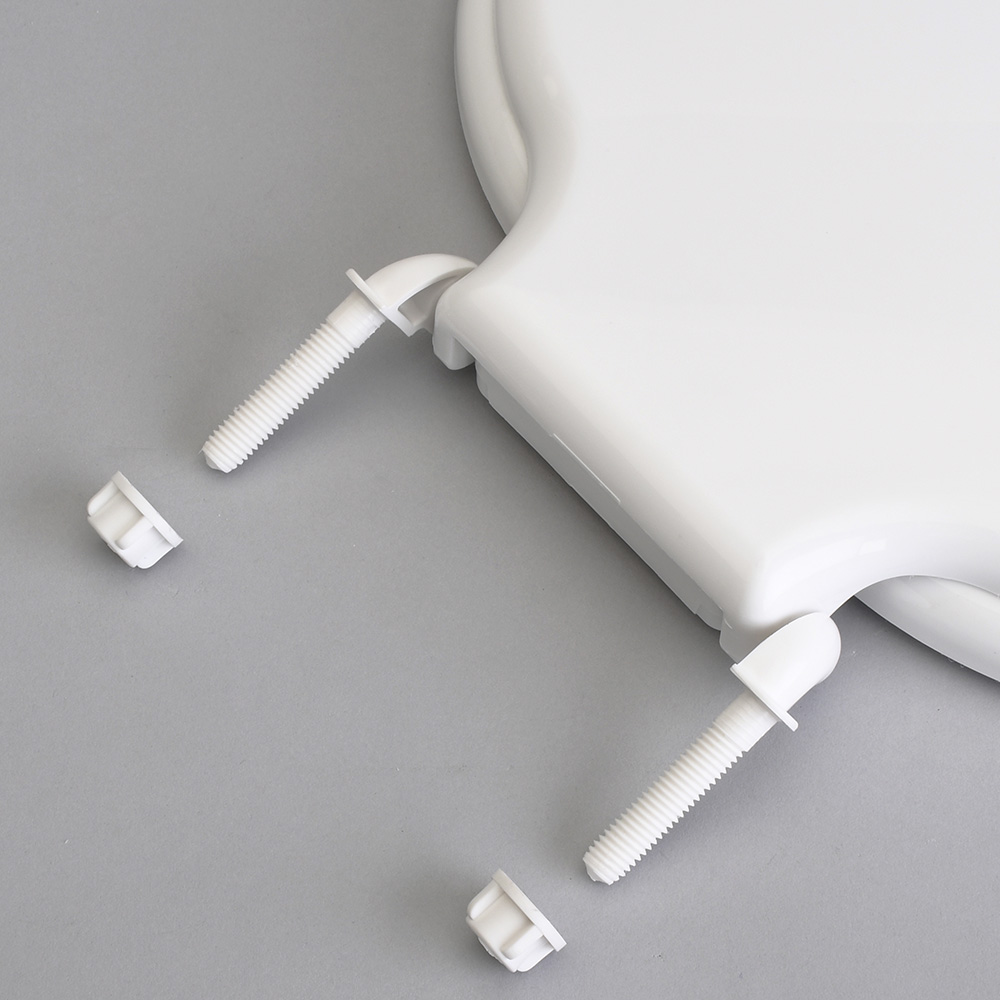 Asiento para inodoro con cierre suave y fijación estable; material resistente y fácil limpieza.